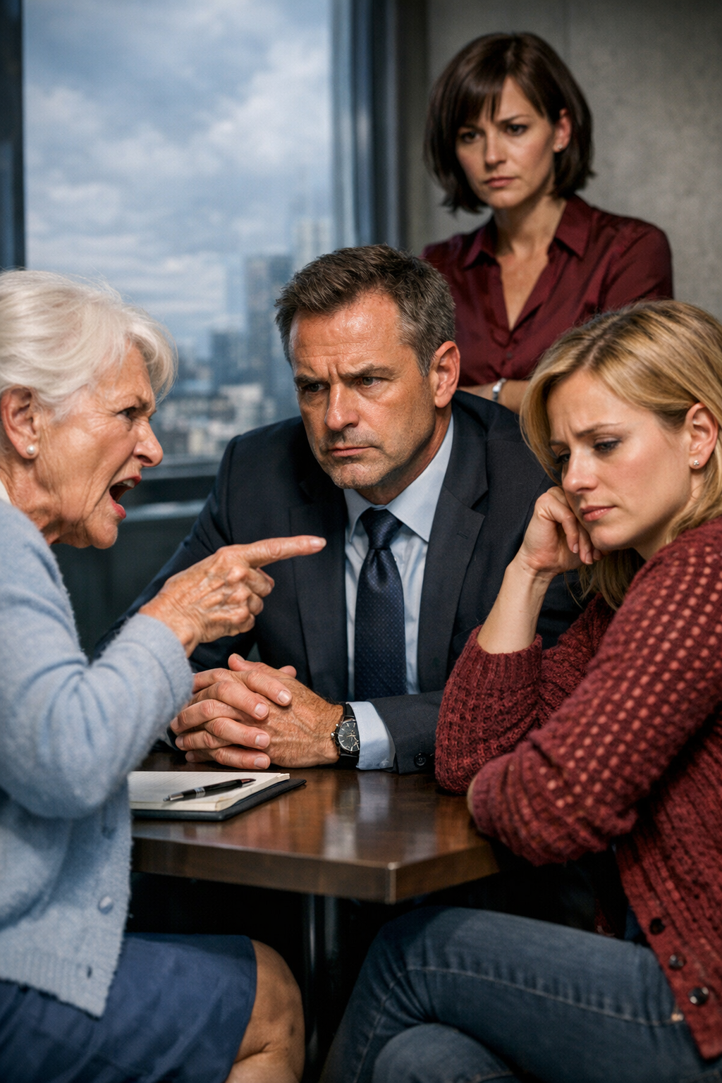Andreja Jazbec je sedela pri miru, dlani je imela položene v naročju. Pogled ji je uhajal skozi okno, kjer je za steklom visel siv, vlažen april. Marko je umrl pred pol leta — zgrudil se je sredi pekarne, med vonjem po svežem pecivu in vanilji. Zdravniki so rekli, da je bil tromb usoden v trenutku. Še vedno ni zares dojela, da se ne bo nikoli več vrnil. Pa so jo že privlekli sem, ker Zdenka in Teja nista zmogli čakati.