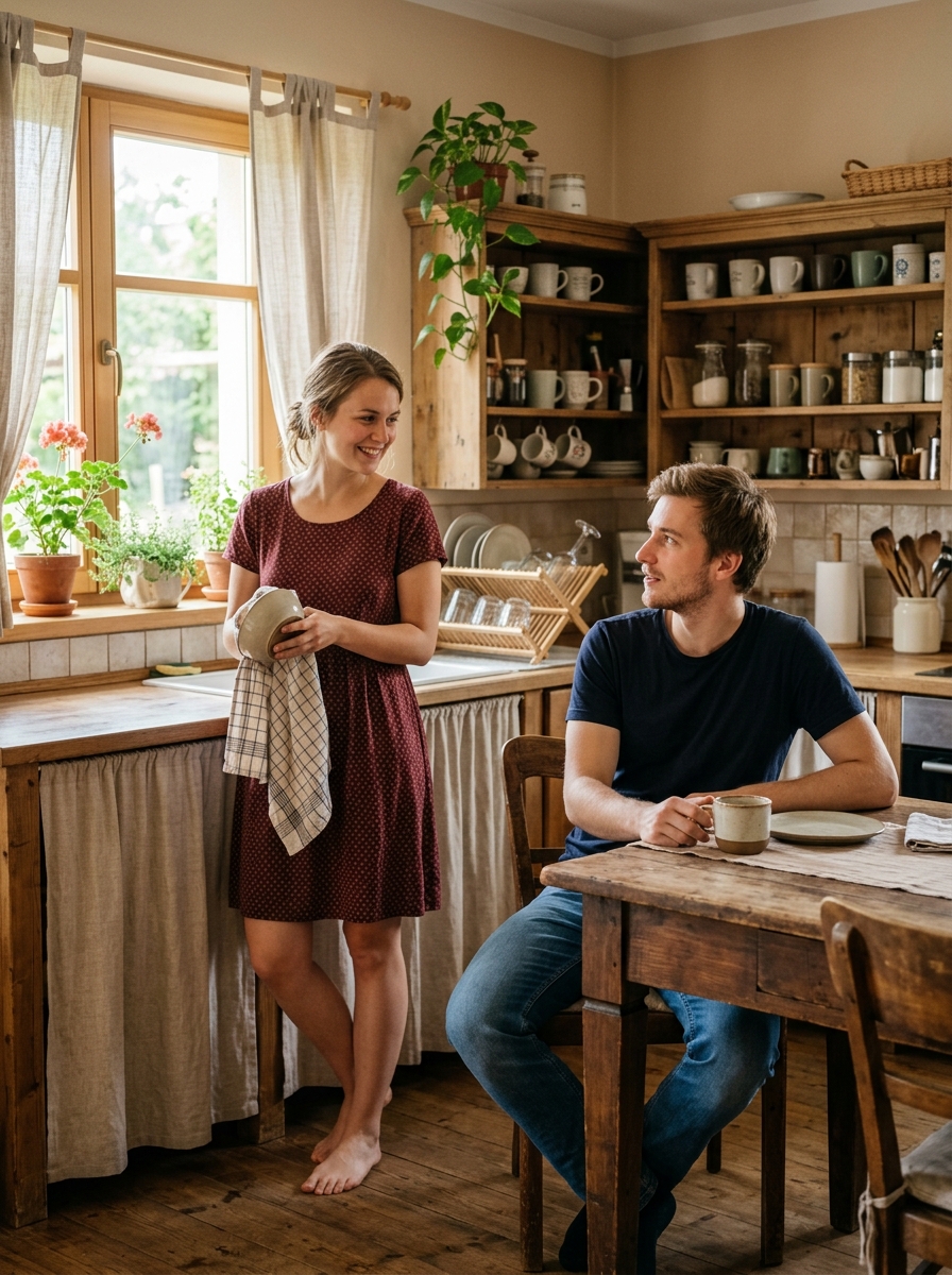 Toda nocoj je bilo v kuhinji nekaj drugačnega. Zrak je bil težak, skoraj negiben. Maja ni planila k štedilniku. Ostala je pri pomivalnem koritu in tiho opazovala moškega za mizo.