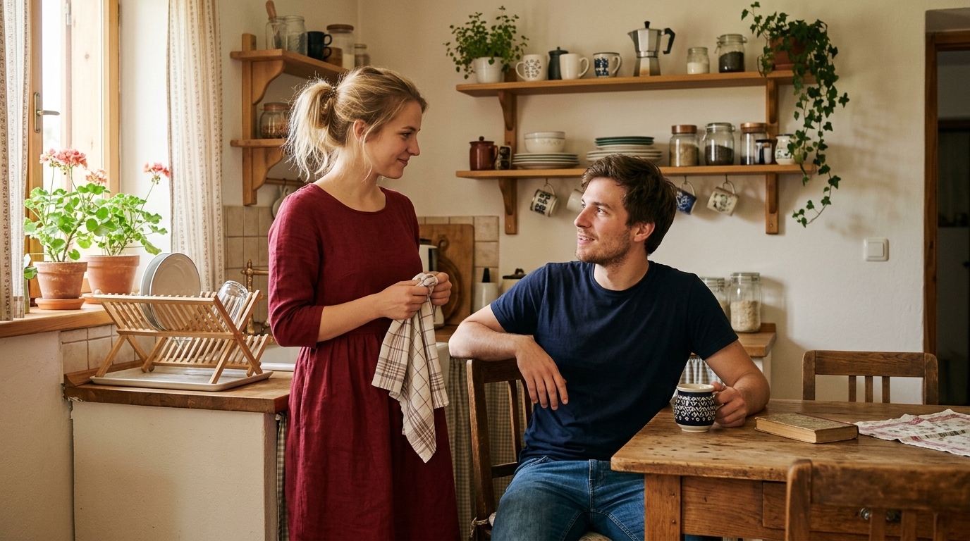 Toda nocoj je bilo v kuhinji nekaj drugačnega. Zrak je bil težak, skoraj negiben. Maja ni planila k štedilniku. Ostala je pri pomivalnem koritu in tiho opazovala moškega za mizo.