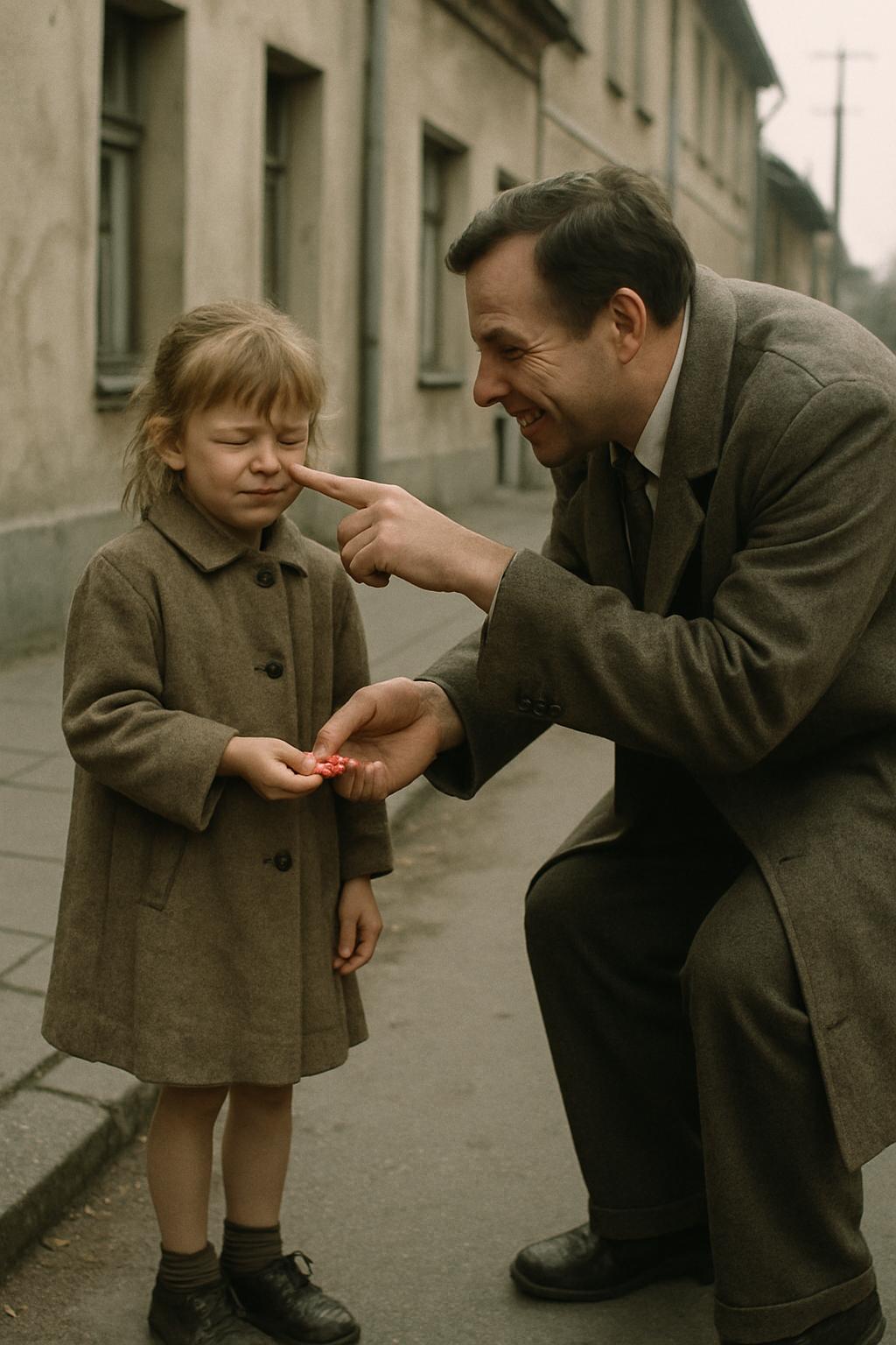 Ni se zgodilo nič hudega. Moški se ji je prijazno nasmehnil, jo rahlo dregnil po nosu in ji naročil, naj uboga mamo. Saj jo je ubogala – kadar je ni, je mama segla po kolebnici in takrat ni bilo milosti.