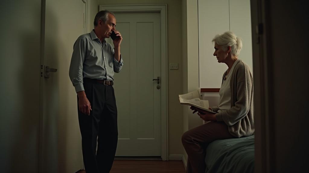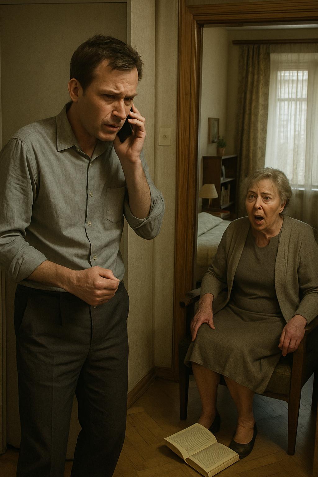 Prisluškovati ni bilo prav. A Andrejev glas ji je bil tuj, hrapav, skoraj zlomljen. Mož, ki je bil sicer vedno zbran in umirjen, se je zdaj očitno lovil — in ta tesnoba se je širila po stanovanju kot vonj po dimu, tik preden izbruhne požar.