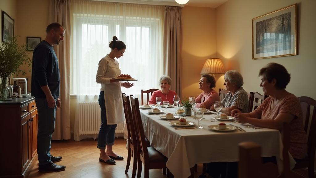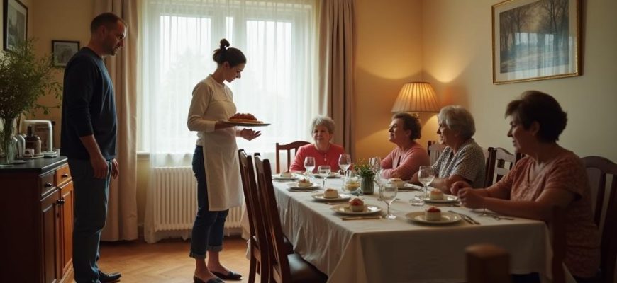 — Pojdi v kuhinjo in se ne izpostavljaj pred gosti, — je mirno pripomnil mož, z glasom, kakor da razpravlja o vremenski napovedi.