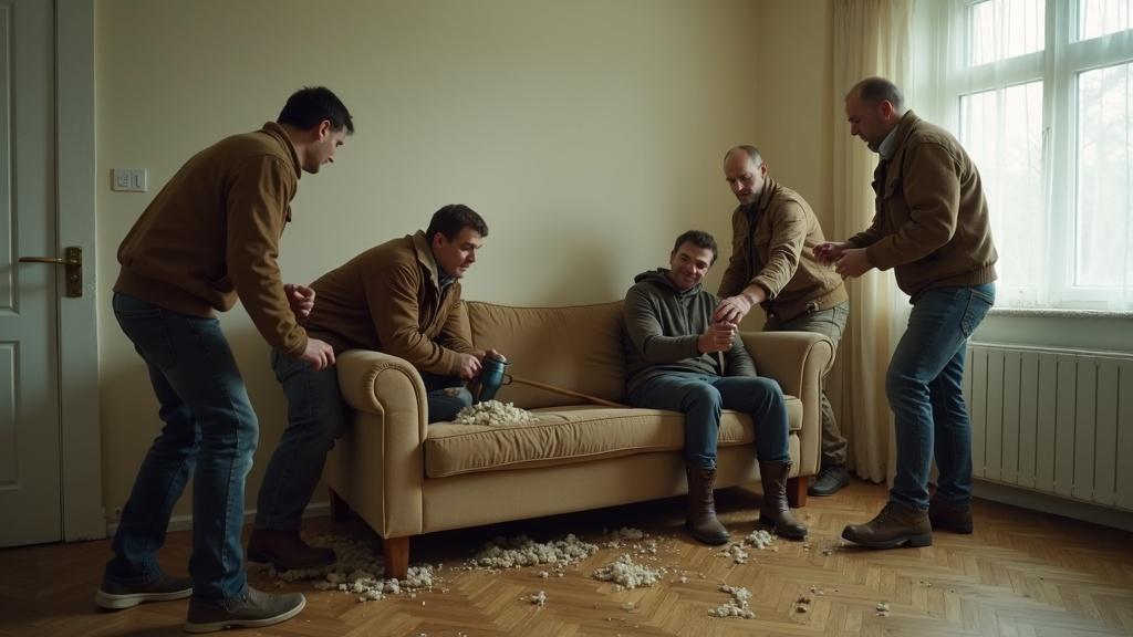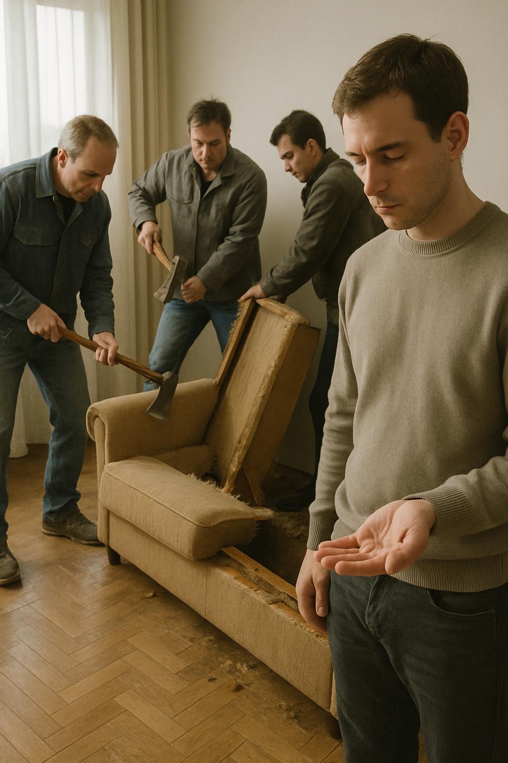 Selivci se niso nameravali dolgo mučiti z razstavljanjem dotrajanega kavča – namenjen je bil na odpad. V roke so prijeli sekiro in lomilec za žeblje ter brez oklevanja začeli razbijati. Stranska dela sta kmalu že slonela ob steni, nato pa so se lotili še hrbtnega naslonjala. Tedaj je nekaj zazvenketalo, odskočilo in se odkotalilo po parketu. Majhen, sijoč predmet je pridrsel naravnost do nog Roka Medveda. Sklonil se je in s tal pobral droben zlat uhan z nežnim belim kamenčkom.