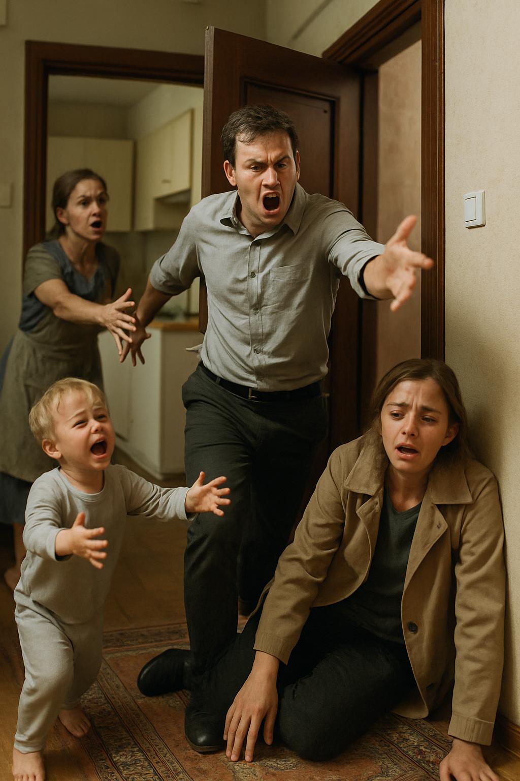 »Odhajam. Dovolj imam vsega. Nisem se poročil zato, da bi na svojih ramenih nosil ves gospodinjski kaos! Večerja spet ni pripravljena, otrok joka, stanovanje je razmetano! Kako naj sploh pridem domov, če me že prag odbija? In kaj si spet navlekla sem, da se do mize sploh ne da?« je kričal.