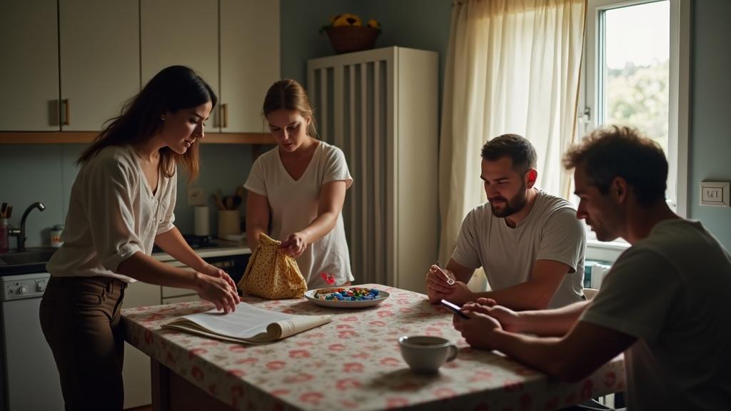 Gorazd je sedel za kuhinjsko mizo, pred seboj skodelico že skoraj mrzle kave. S pogledom je drsel po zaslonu telefona in se pretvarjal, da bere novice, v resnici pa je z roba očesa opazoval vsak ženinin gib. Napetost je visela v zraku; čutil jo je v njenih korakih, v načinu, kako je tiho odpirala in zapirala predale.