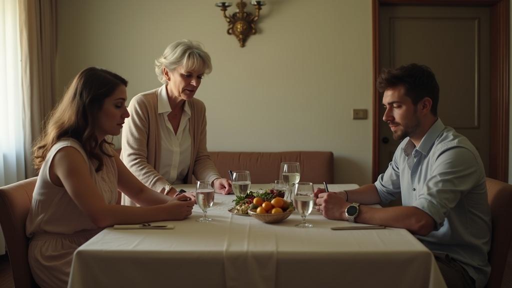— Če sem povsem iskrena, — je mati ženina globoko vzdihnila, nato pa ostro pogledala bodočo snaho, — ti preprosto ne sodiš v našo družino.