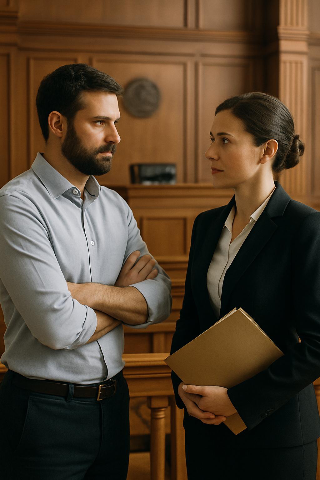 Sodna stavba ju je sprejela s praznimi, odmevajočimi hodniki in značilnim vonjem po uradništvu. Pred vrati razpravne dvorane ju je čakal Andrejev odvetnik — suh moški z očali, oborožen s kupom map.