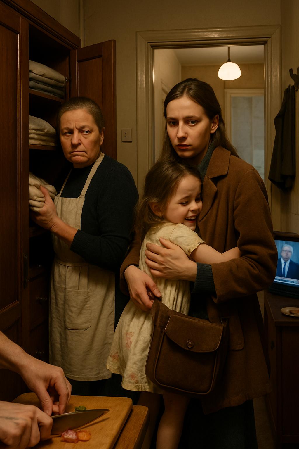 Ana Potočnik je obstala v predsobi in napela ušesa. Iz dnevne sobe je prihajal enakomeren glas večernih novic, iz kuhinje pa miren, ponavljajoč se udarec noža ob desko — tašča je pripravljala zelenjavo za večerjo.