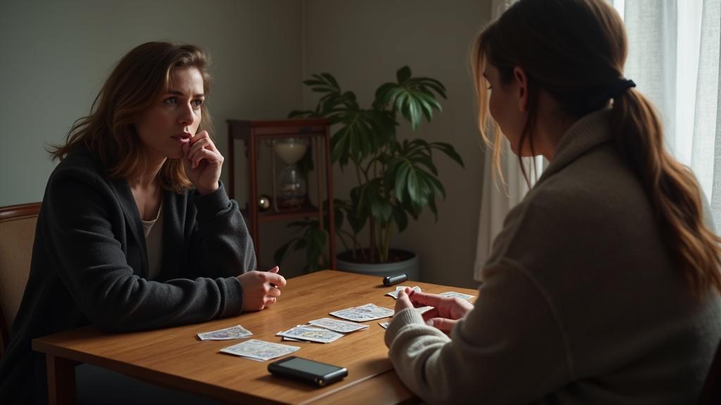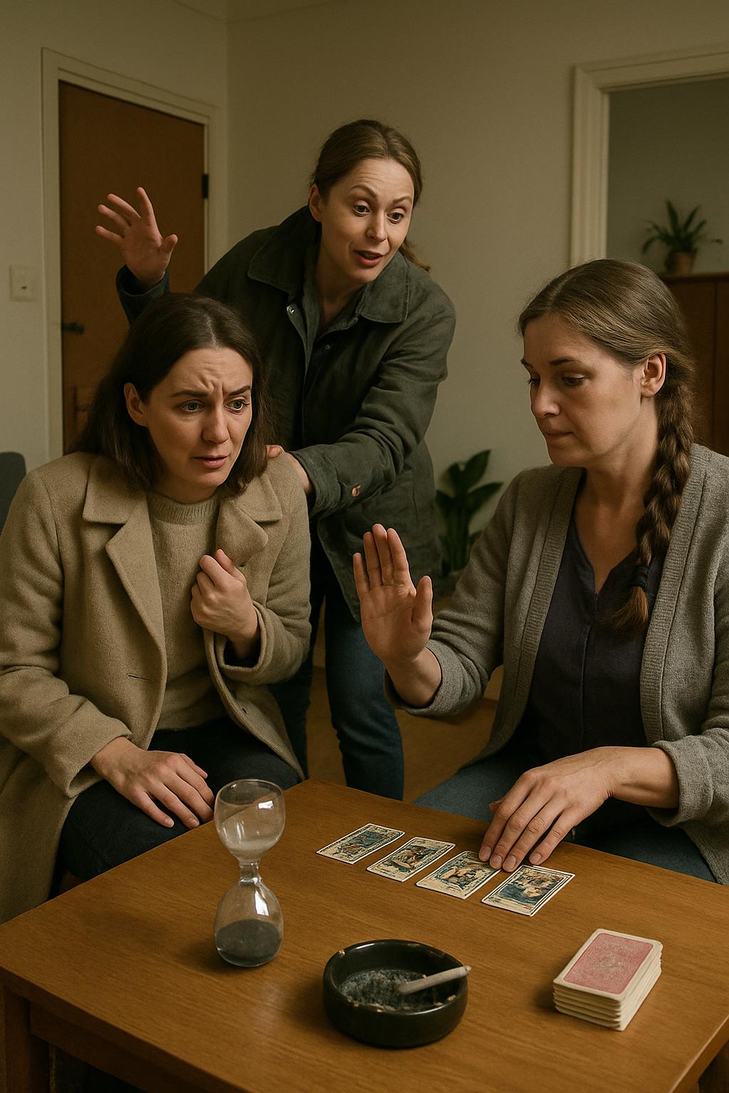 Prostor je bil presenetljivo vsakdanji. Nikjer sveč, kristalnih krogel ali nagačenih sov. Za navadno leseno mizo je sedela povsem običajna ženska s kostanjevo kito, oblečena v kavbojke in mehko jopico. V zraku se je mešal vonj po češnjevem tobaku in težkem parfumu. Na mizi so stale peščena ura, poln pepelnik in kupček kart. Nika je bila zmedena – takšne vedeževalke si ni predstavljala – in komaj je začela razlagati, zakaj je prišla, ko jo je ženska z odločnim gibom utišala ter ji pomolila karte.