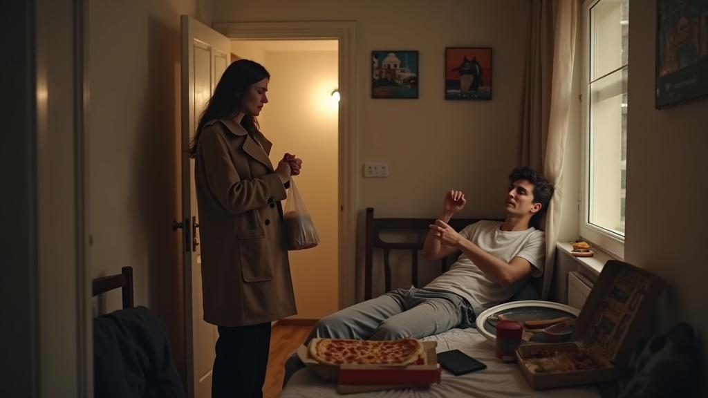 Na mizi so se kopičile prazne škatle pic in burgerjev. V koritu je bila gora neumite posode, štedilnik pa je sameval — o obljubljenih polpetih ni bilo sledu.