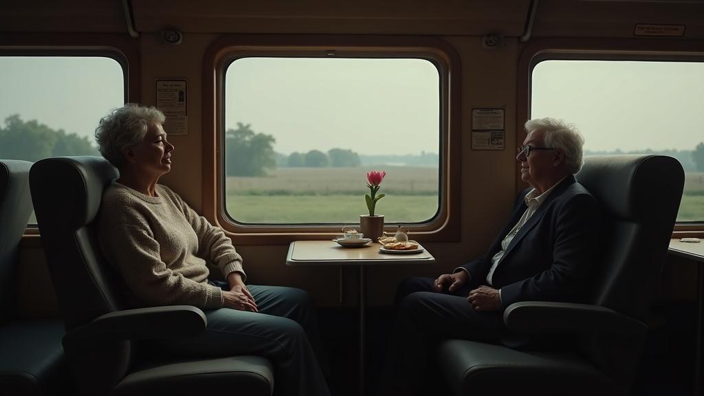 V kupeju sta poleg nje sedela starejša zakonca. Četrti sedež je sameval; očitno je Gašper vozovnico odpovedal, nihče drug pa je ni kupil. Ob misli nanj se ji je srce znova stisnilo. Vse se je odvilo prehitro – beseda je dala besedo, nato očitek, in že sta stala vsak na svoji strani. V zadnjih mesecih sta se prepirala zaradi malenkosti, čeprav je Gašper trdil, da je pod pritiskom v službi.